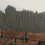 After the adhesive sets, the joints should be filled with grout or brick mortar. The excess is cleaned off before it can set.